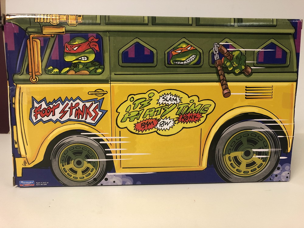 本次的忍者龜可動玩具是回歸 80 年代的元祖設計,從身形比例、武器陣容、吊卡包裝,以及忍者龜頭套(Turtle Bandana)跟腰帶扣上的字母都高度還原了過去的造型,超級懷舊!光是看到李奧納多只露出一邊的牙齒、多納泰羅那偏深藍色的頭套,真的是回憶滿載~除了神龜四兄弟之外,這次的套組還附上了老師「史林特(Splinter)」跟忍者龜永遠的宿敵「許瑞德(Shredder)」,而且而且,附提帶的長方形包裝外盒更印製了精美的卡車盒繪,讚到不行!