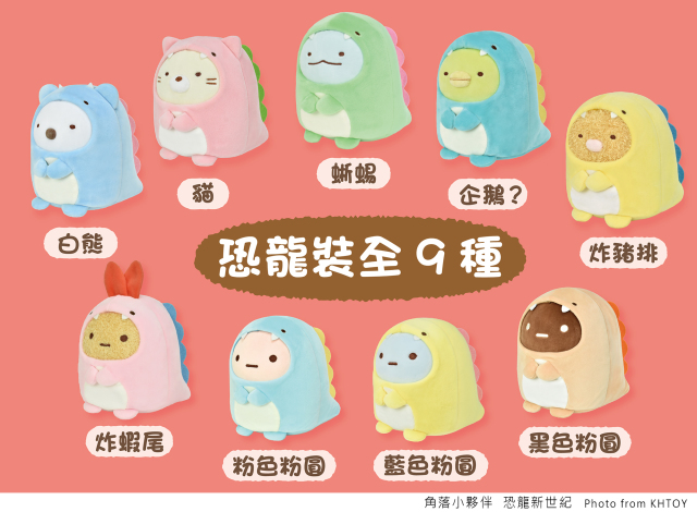 本次由台灣的絨毛玩偶品牌授權經銷商KHTOY拼出你的絨毛圈首次全角色開發豐富IP,推出角落小夥伴-恐龍新世紀相關系列商品,超可愛的角落小夥伴變裝恐龍造型絨毛玩偶,以及相關周邊商品:恐龍吊飾、絨毛側背包、絨毛束口袋、絨毛零錢包、絨毛後背包與絨毛抱枕等全部共78款商品,可以說是相當大手筆的製作,相信眾多角落小夥伴的愛好者都已經迫不及待準備收藏了。