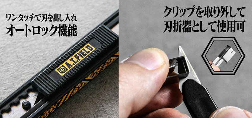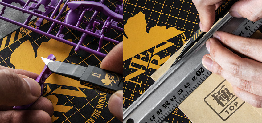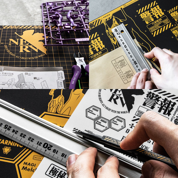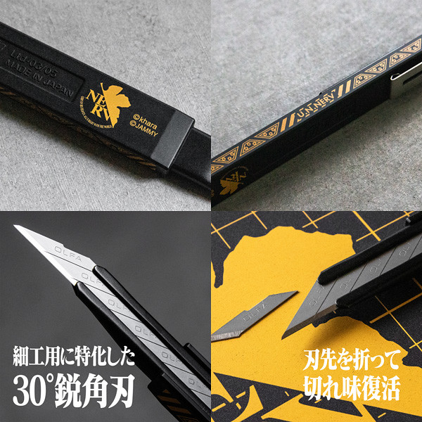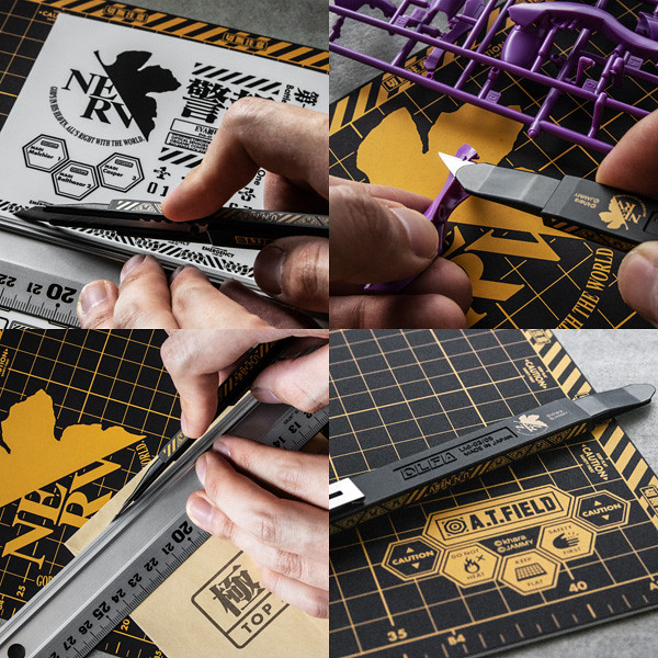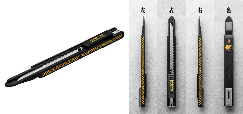 結合《新世紀福音戰士》的世界觀,以劇中經典的特務機關 NERV 風格作為設計,推出「NERV 美工刀」,使用專門用於30度刀片角度的鋒利刀片,可以進行精細的切割作業。整體為消光黑與亮眼黃色的鮮明配色,具有對比的美感。