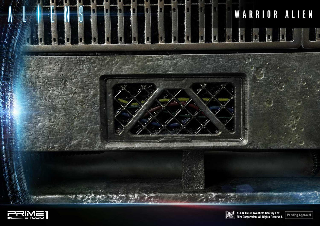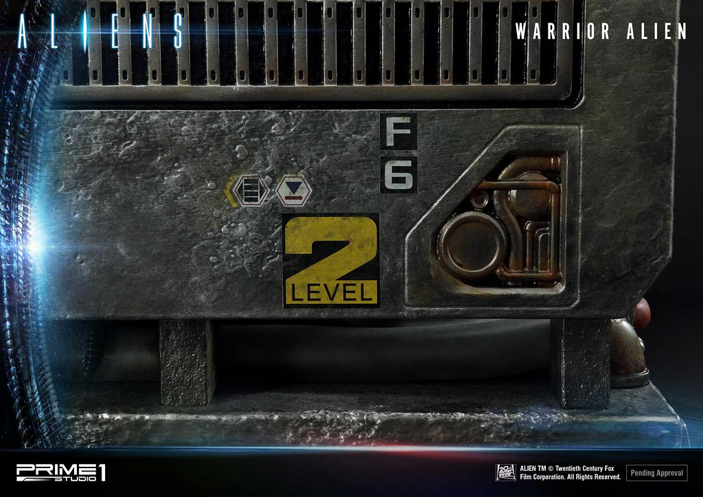 「PMDHAL-02 異形戰士」高度來到 67 公分,除了以精湛的雕刻工藝充分展現異形戰士本體無機物與外星生物結合的造型美之外,毫不馬虎的場景細節更是完全把人帶回觀看《異形》系列電影時的驚悚氛圍中,異形戰士逼真的樣貌、前傾的姿態,以及彎曲的尾巴給人蓄勢待發、即將展開殺戮的臨場感與緊張感,地台是以「一艘船艦被異形入侵」的主題設計,可以看見打開的異形蛋、抱臉體、遭到強酸液體侵蝕的底版,還有「韋蘭-尤坦尼集團(Weyland-Yutani Corporation)」的 LOGO。