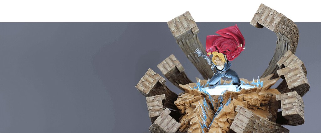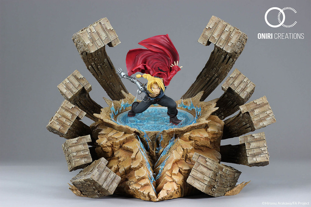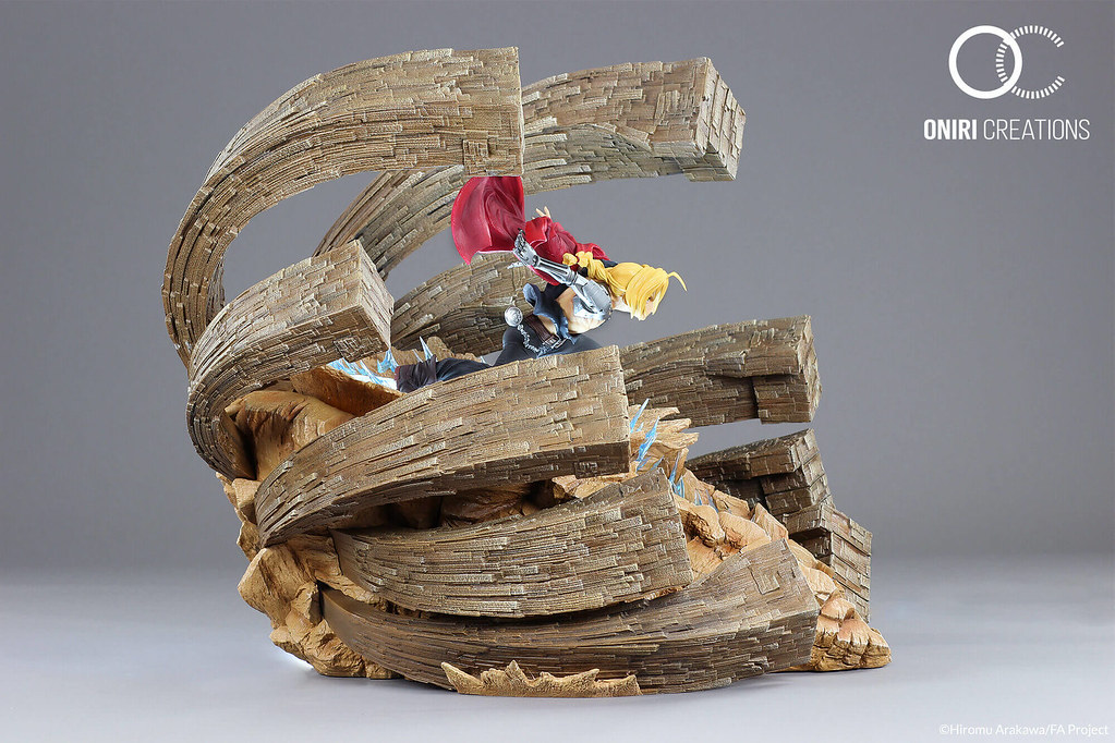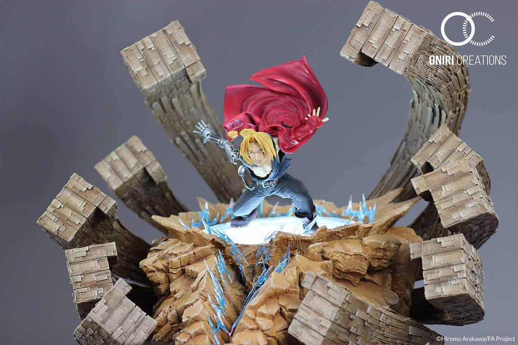 以製作動漫作品雕像而知名的法國廠牌Oniri Creations,於 2018 年發布將推出人氣動漫《鋼之鍊金之術師》為主題的作品:「愛德華.愛力克-激烈反擊」(暫譯,EDWARD ELRIC – A FIERCE COUNTER-ATTACK)1/6比例場景雕像,全球限量 800 體,參考售價為 515.83 €,預計於 2020 年第二季出貨。(目前已售完,官網購買需預排候補名單)