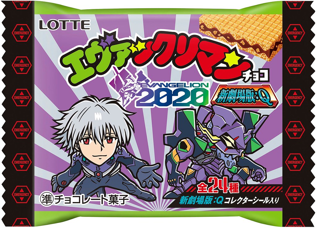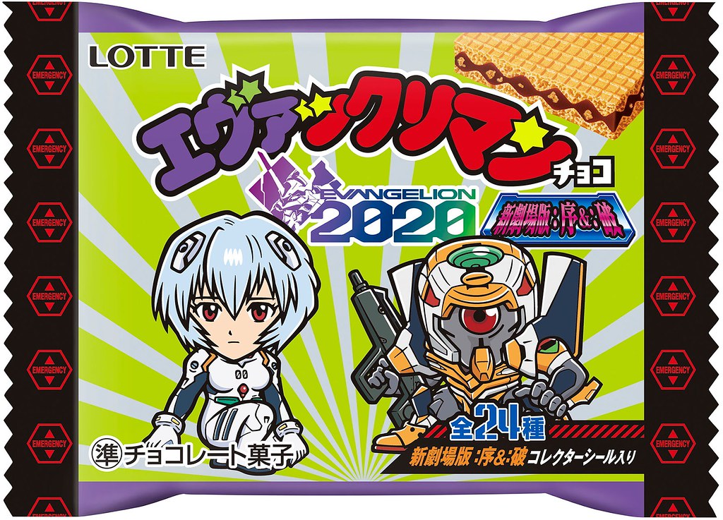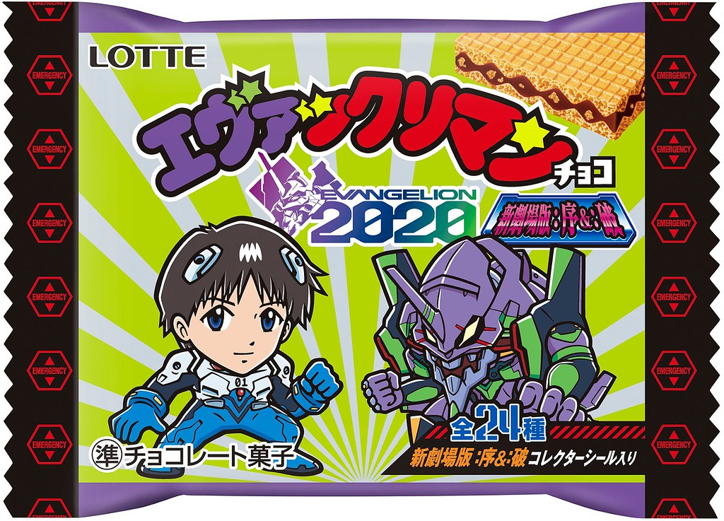 日本樂天 LOTTE 零食品牌所推出的經典「聖魔大戰」(ビックリマン/Bikkuriman)巧克力餅乾,在「聖魔大戰之日」驚奇企劃中發布過與《福音戰士新劇場版》聯名的相關消息,而這項「聖魔大戰 x《福音戰士新劇場版》」(エヴァンゲリオン×ビックリマン)合作日前終於公布將會推出 24 款珍藏貼紙,並預計在 2020 年 6 月 23 日正式發售!
