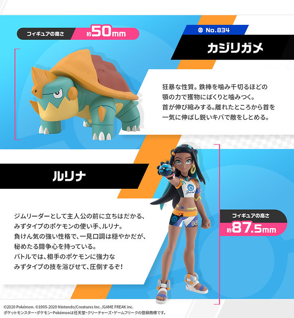 由日本萬代公司食玩事業部 BANDAI Candy 發行,甫發表就掀起熱烈討論的《精靈寶可夢》 1/20 比例食玩系列『POKEMON SCALE WORLD』繼伽勒爾地區篇後,今(22)日再度發表了伽勒爾地區最新商品「POKEMON SCALE WORLD 伽勒爾地區篇 露璃娜&暴噬龜」預計於 2020 年 11 月發售的消息。