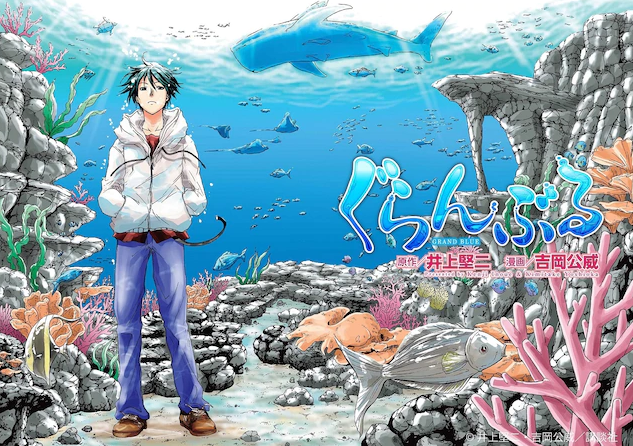 主角北原伊織升入大學後,從社團「Peek a Boo」至「GRAND BLUE」潛水商店邂逅美少女和一群基力四射的裸體狂熱分子,在水肺潛水與校園生活中展開各種誇張笑點事件,其中也有今村耕平這種「是金髮帥哥又重度宅男」的高反差屬性,在井上堅二巧妙筆鋒下活靈活現,也擦出更多歡笑火花,動畫版更以「可燃水」笑話成為廣布迷因。