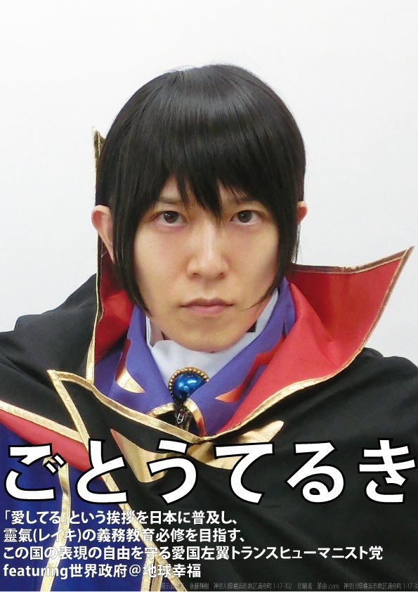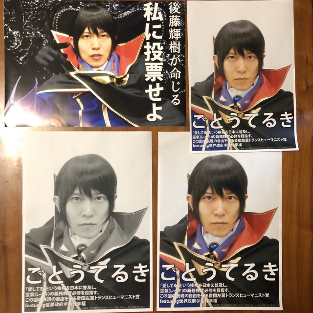 在一眼望去的競選海報中,有一位特別亮眼,作為一個魯路修服裝打扮,並以驕矜的王之力口吻破題「在此下令,投票給我」,正是37歲無特殊背景的政治家後藤輝樹。