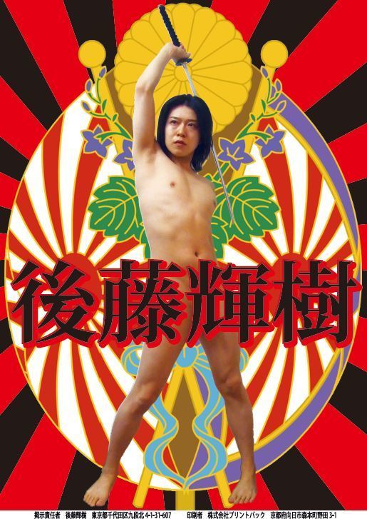 以亮眼、搞笑的海報角逐的後藤輝樹已經不是第一次標新立異,他在2015年的「裸體競選海報」、2016年「HNK髒話播放消音」、「連微基百科都刪除」等創舉,都不斷挑戰著日本國人的敏感神經,而他自10歲的私人存款都已經燒乾,9次失敗卻又不斷挑戰,讓越來越多年輕人願意募資與支持。