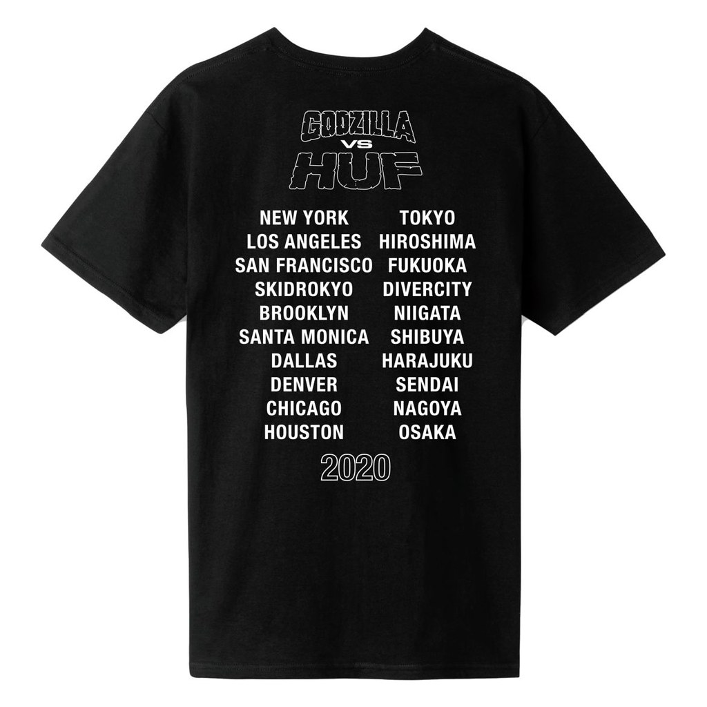在這次的聯名中,也能看到不愧對於「怪獸之王」之名的霸氣設計,像是直接在 T-Shirt 正面印製滿滿的電影 LOGO,還有哥吉拉路過、大鬧的城市名稱,超硬派、超直球啊!也在在顯示出哥吉拉陪伴怪獸迷的長久時光與回憶~而在服飾商品之外,與日本知名玩具廠牌 MEDICOM TOY 合作推出的怪獸軟膠也極具收藏價值,不過包含這款軟膠在內的多款「GODZILLA vs. HUF」系列商品都已經售完,怪獸迷要買要快~!