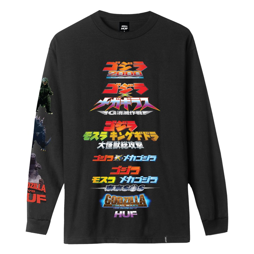 本次的聯名商品系列「GODZILLA vs. HUF」大多是以哥吉拉,以及哥吉拉系列的經典怪獸、電影為題,再注入街頭感十足的設計元素,打造出兼具潮流與硬派風格的帥氣服飾!從短袖、長袖 T-Shirt,到教練外套、帽 T 都有,除了哥吉拉、摩斯拉的圖樣以及像是《哥吉拉vs戴斯特洛伊亞》、《怪獸總進擊(哥吉拉電擊大作戰)》的電影海報之外,雙方還設計出了搶眼的「GODZILLA vs. HUF」主視覺圖樣,加上令人著迷的「哥吉拉(ゴジラ)」、「hufworldwide(ハフ ワールドワイド)」日文字體在各處點綴,存在感極強而且相當帥氣!!!