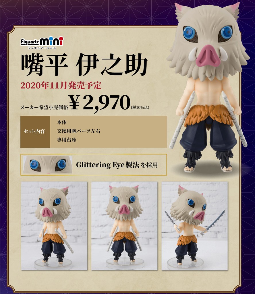 日本BANDAI SPIRITS 旗下收藏玩具事業部TAMASHII NATIONS 熱賣的可動人偶 Figuarts 新系列「Figuarts mini」,在推出了以超人氣《鬼滅之刃》為主題的第一回鬼滅之刃角色推出後, 再度發布了第二回將登場的新角色:「Figuarts mini 嘴平伊之助」、「Figuarts mini 冨岡義勇」兩位角色~參考售價為各 2,970 日圓,預計將於 2020 年 11 月發售。(7月3日開放官網預購)