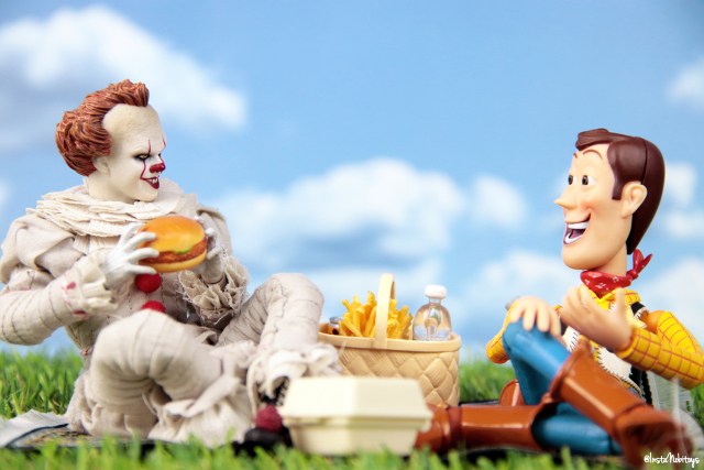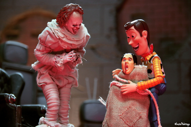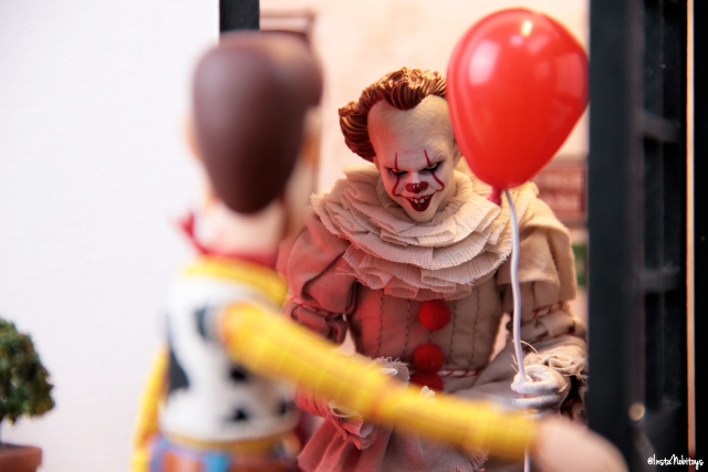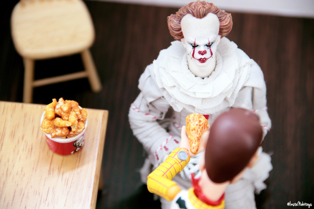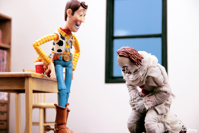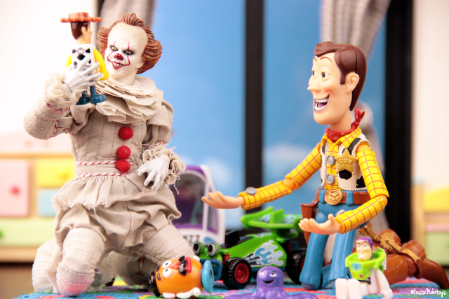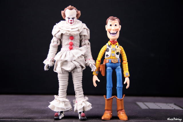 放個對比圖給大家看,Pennywise身高約17cm,比山口式的胡迪高了些。(胡迪約15cm)