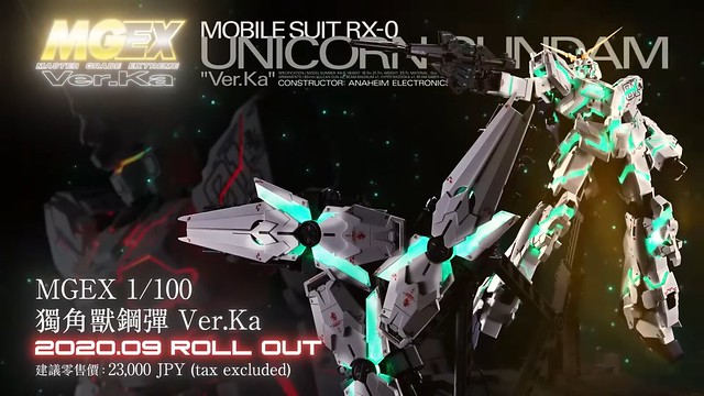 日本 BANDAI SPIRITS 公司 HOBBY 事業部今(02)日正式發表了鋼普拉商品全新系列『MGEX』第一彈商品「MGEX 1/100 獨角獸鋼彈 Ver.Ka」預計於 2020 年 09 月發售的消息。