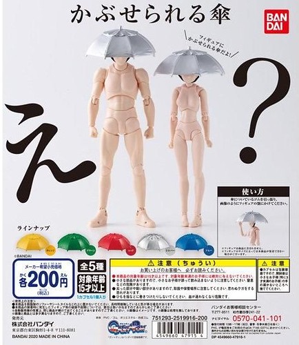 日本萬代玩具公司轉蛋事業部「GASHAPON」將推出一款趣味又爆笑的「頭戴式雨傘 傘帽」(かぶせられる傘)轉蛋,一共有五種款式,一轉參考售價為 200 日圓,預計將於 2020 年 7 月第二週發售。