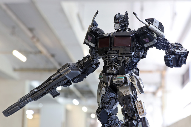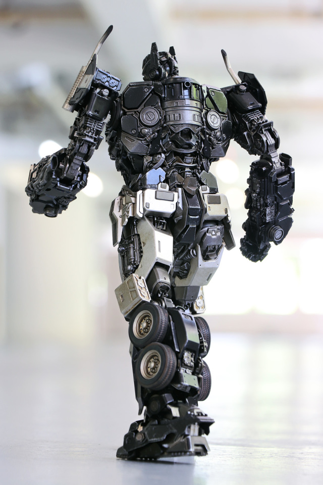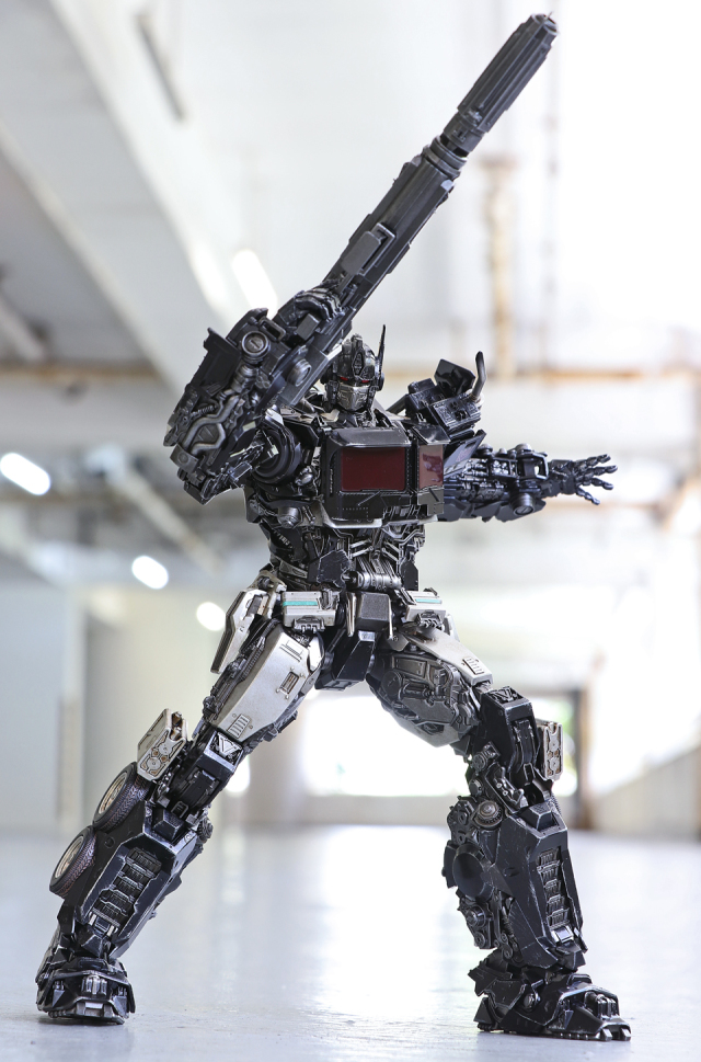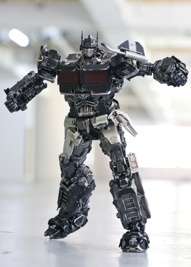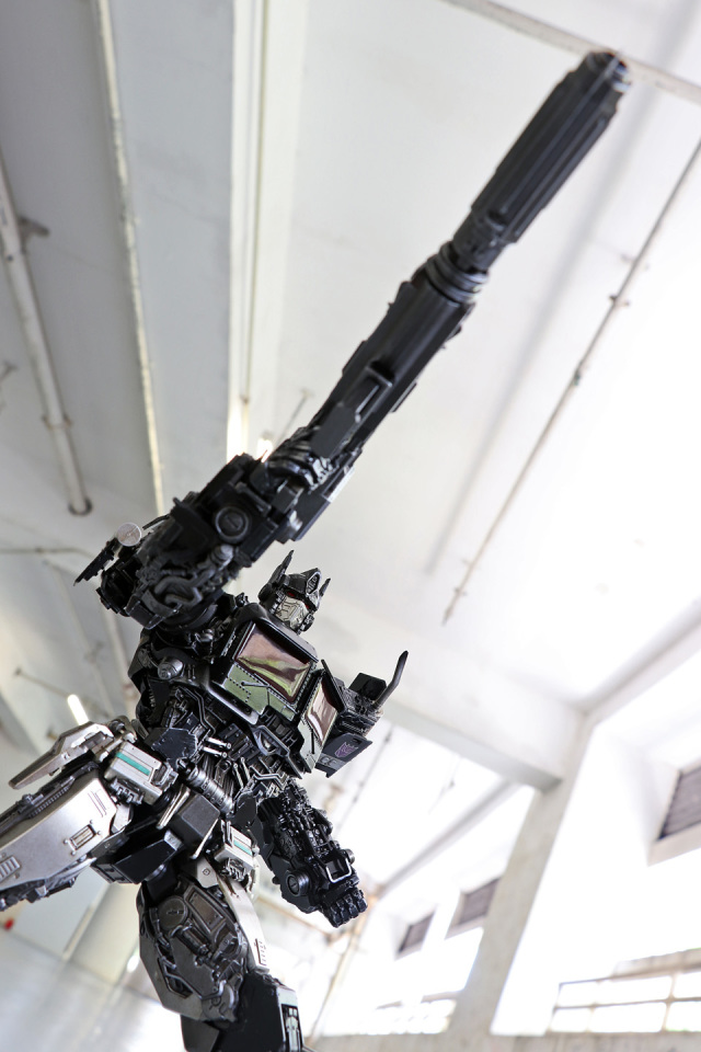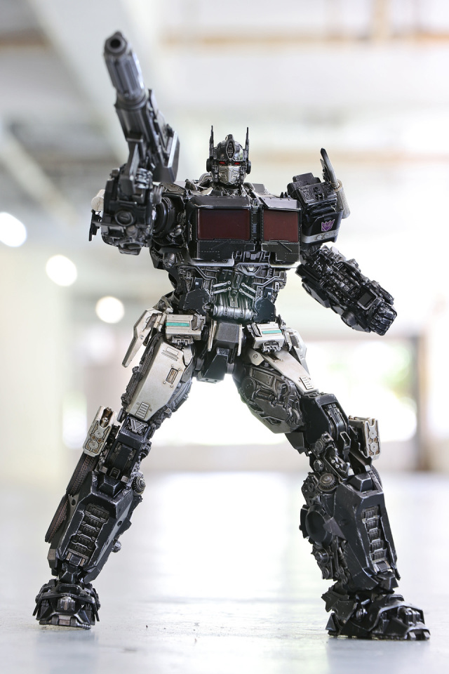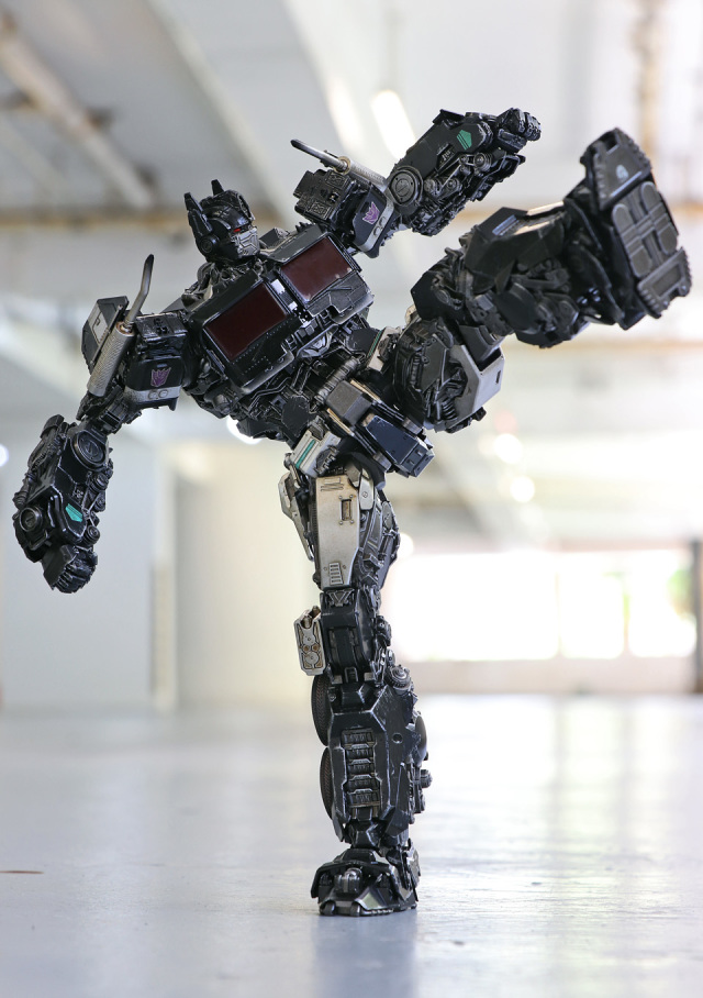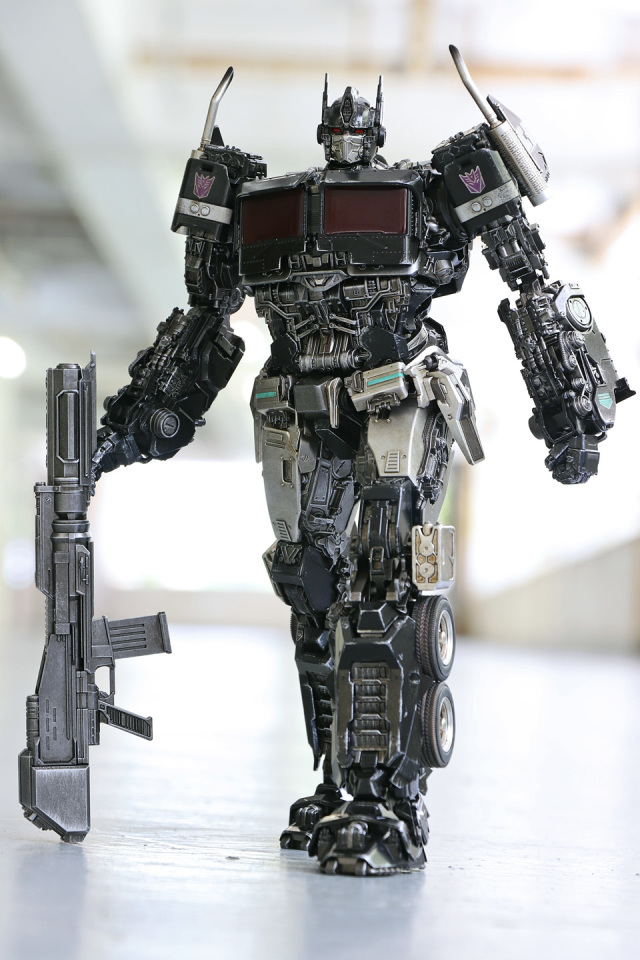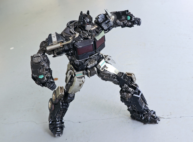 Nemesis Prime 全身遍佈精密的結構,大量精密的零件分佈使得其細節和層次感都更加豐富。整體塗裝很讚,QC 亦很出色!主體有著驚人的情報量,裝甲表面所散發出的金屬厚重感更是極具魅力!雙肩還有車型態的排氣管,兩側的肩甲也有狂派的標誌,全身精密的雕刻細節及機械結構絕對是其最大賣點之一。另一重點當然是其意想不到的可動性,特別是腰部及內胯的可動設計,讓玩家可以輕鬆擺出任何姿勢。不過各主要外甲與關節的連接位置較易被刮花,玩的時候要小心留意了。