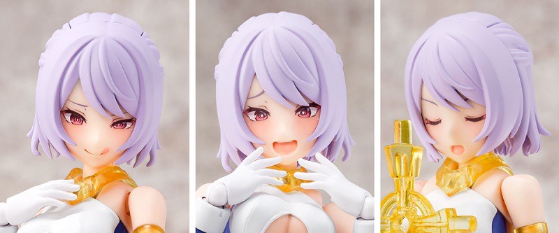 「女神裝置 銃彈騎士 驅魔師」運用兩組新成形色的「Exceed Binder」套件以及胸~大腿間各部零件、頭盔、肩甲...等多種完全新規零件製作,其中也包含髖關節前方那塊給人遐想的白布。並附上設計相當誘人的塗裝完成表情零件三種,運用淺井真紀設計的高可動「machineca」素體、多種造型手掌、眼睛水貼紙,即可把玩出豐富的造型、情感變化。
