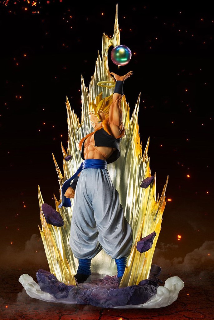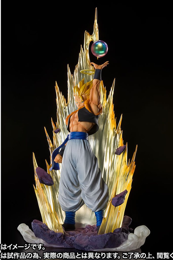 「Figuarts ZERO 超級賽亞人 悟吉塔 - 復活的融合」,整體尺寸高達 28 公分,以悟吉塔使出必殺技-星辰爆裂、單手高舉的姿勢呈現。結合大魄力的特效件,施以金屬光澤的金黃漸層色,打造出滿滿「氣」魄的模樣,連地台的碎石都隨之浮起,相當具有動態感!手中的氣功波也是極具質感的彩色金屬色澤,結合帥氣的憤怒表情,與服裝精緻的布紋,完整還原劇中的經典一刻!