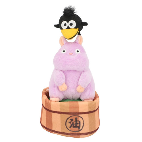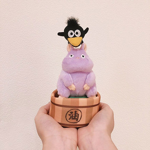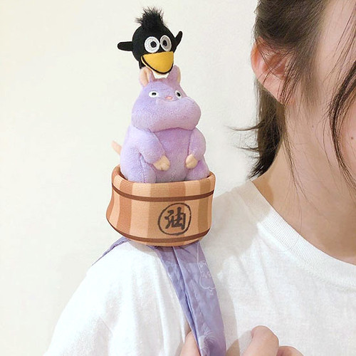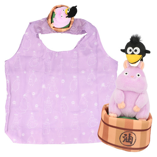 另一款「神隱少女單肩背環保袋-坊寶寶老鼠&小烏鴉」則是以《神隱少女》中,被變身為老鼠的坊寶寶小老鼠(坊ネズミ)與湯婆婆的隨從變身的小烏鴉(蒼蠅)為布偶造型,將這可愛的組合背在肩上,可以重現劇中走不動時,站在主角千尋身上的模樣!