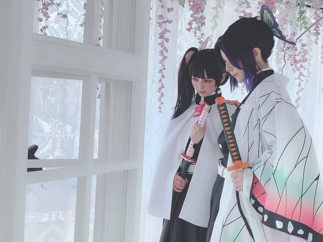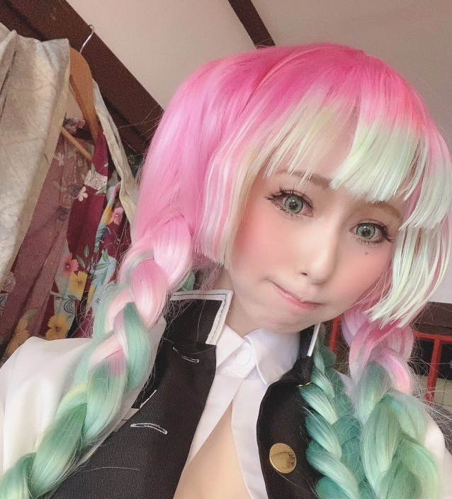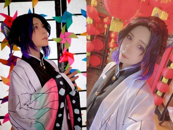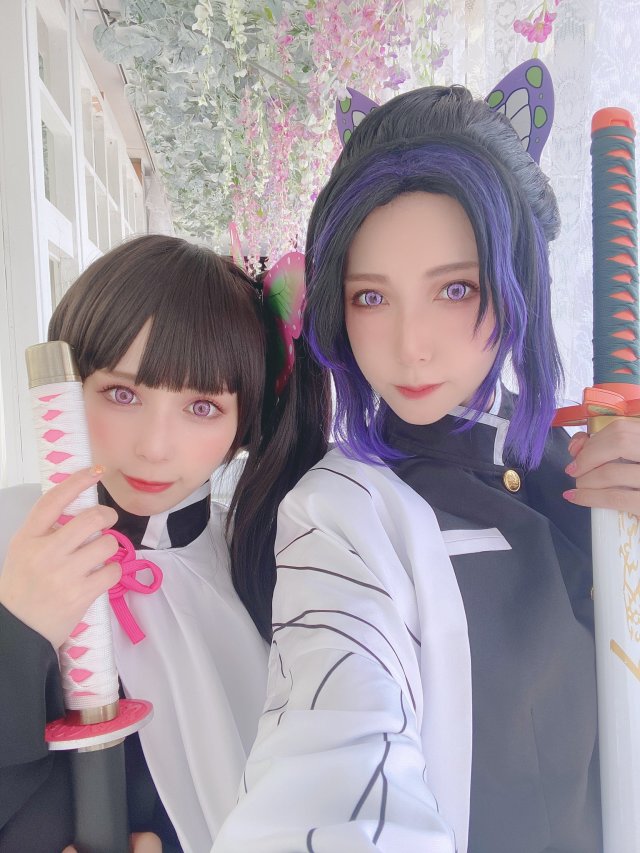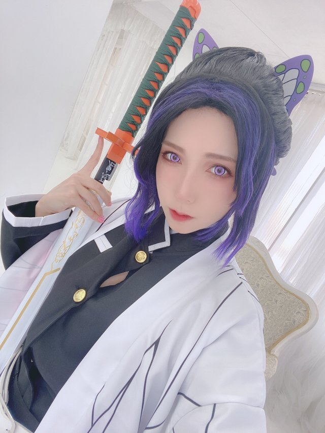 引退2年的佳苗琉花近年也積極轉型,本次扮演的「栗花落香奈乎」的造型天然,看似無害神情還原了故事中前一段「迷茫時期」,最厲害的是日輪刀上切羽的圖樣也有正確,在繼承香奈惠的蝴蝶髮夾下特別清純。