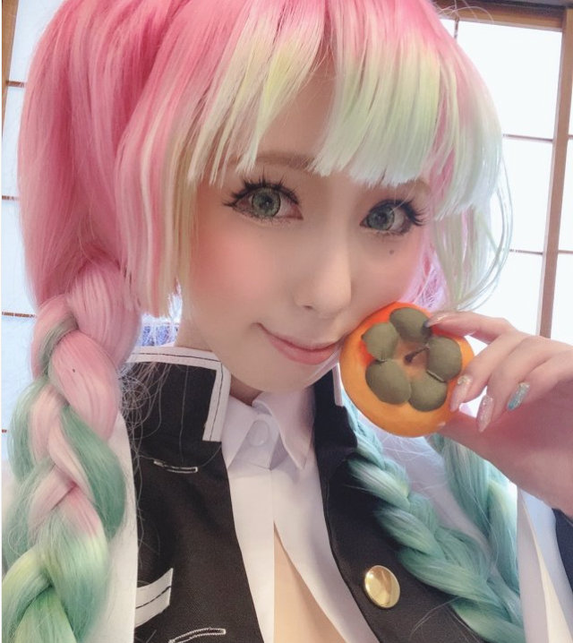 最後是令人驚艷的ぽんちゃんだよ(@x_MariPon_x),作為波多野結衣的朋友,平日就有COS的喜好,本次挑戰大膽的且困難的戀柱「甘蜜寺蜜璃」,許多COSER會使用道具義乳來還原作品中誇張的身材,而本次的MariPon還準備了柿子已凸顯蜜璃作為吃貨的可愛特色。