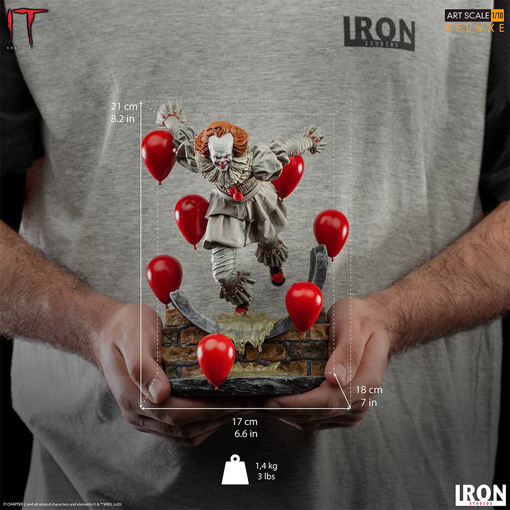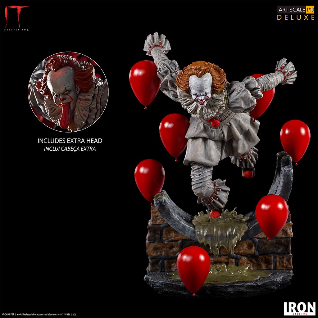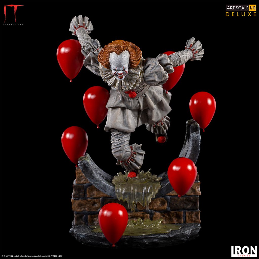 「Art Scale 潘尼懷斯 豪華版」高約 21 公分,以牠在下水道奔跑、彷彿在追獵物一般的造型設計,細緻地刻畫出牠的駭人笑容、額頭裂紋與橘色頭髮,小丑戲服的紅色絨球、荷葉形領飾也高度還原,並表現出寫實的皺摺,本作還附上一個吐出長舌頭的替換頭雕,四周的紅氣球也巧妙地被固定在各處,營造出漂浮的視覺效果,加上牠腳底下的髒水,完全讓人再次進入德利小鎮那陰森的下水道!