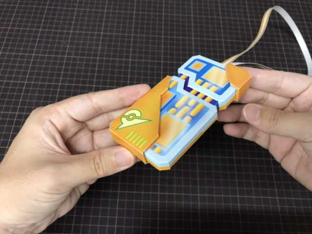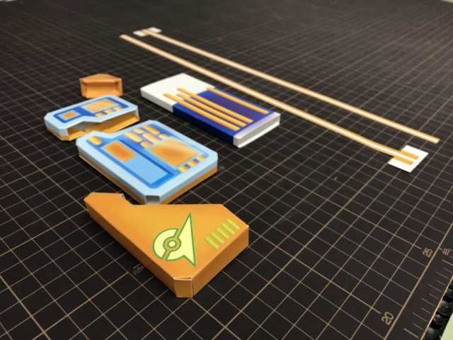 其作法就有如下方的「團體戰入場卷」製作過程那樣,先在 Adobe Illustrator上先繪製紙模的展開圖,然後印下來進行組裝。而且若是仔細看,上頭的色彩繪製是相當的還原,彷彿就是從手機遊戲裡取出來的一樣,非常精美。