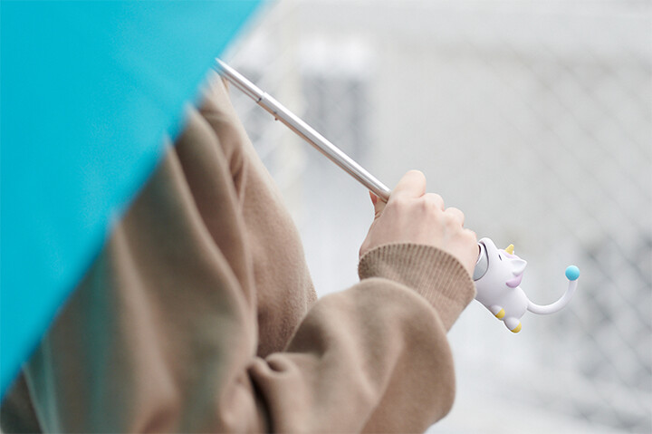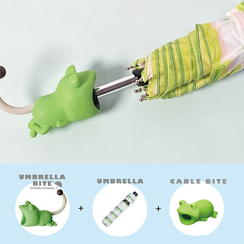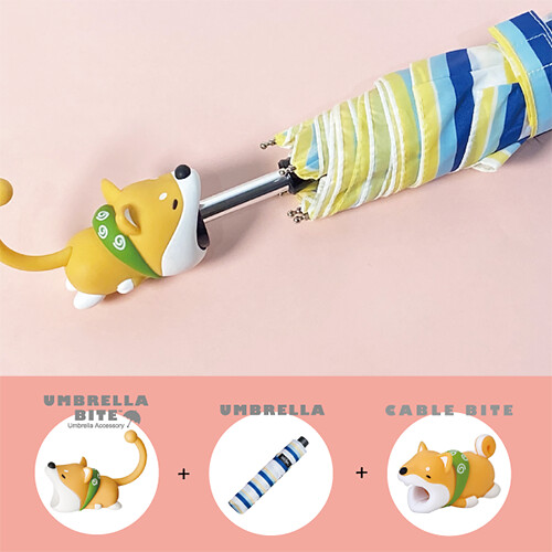全新的「UMBRELLA BITE」系列,同樣以「CABLE BITE」張著大口幫你咬住的概念為設計,這次改幫大家咬住摺疊雨的握把啦!套上 UMBRELLA BITE 保護套後,不但能裝飾讓自己的雨傘變得可愛,掛勾尾巴的設計還能解決折疊傘的收納等問題,兼具實用與造型。