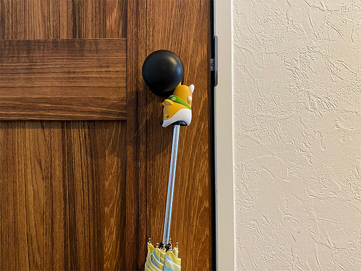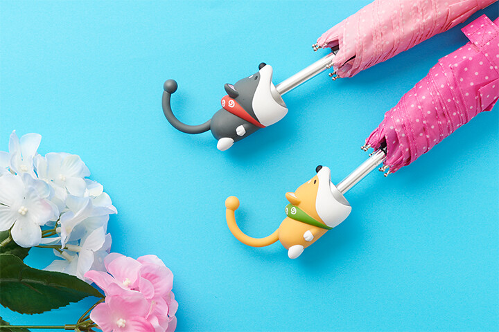 第一彈「UMBRELLA BITE」系列的陣容分別有:柴犬、黑柴犬、獅子、貓熊、青蛙與獨角獸六種款式,可以用於直徑約25mm~30mm的傘柄尺寸,並有著能耐重 1kg的性能。動物們的尾巴設計,增加了掛勾的功能,無論是將使用過的傘掛在桌邊、掛在門把上以防忘記拿,或是將雨傘掛在包包上等,利用簡單的設計輕鬆解決問題~另外,也可以搭配 UMBRELLA BITE + 雨傘 + CABLE BITE 的組合,一起使用可愛加倍!