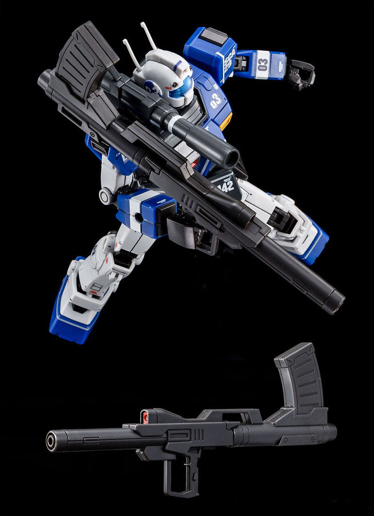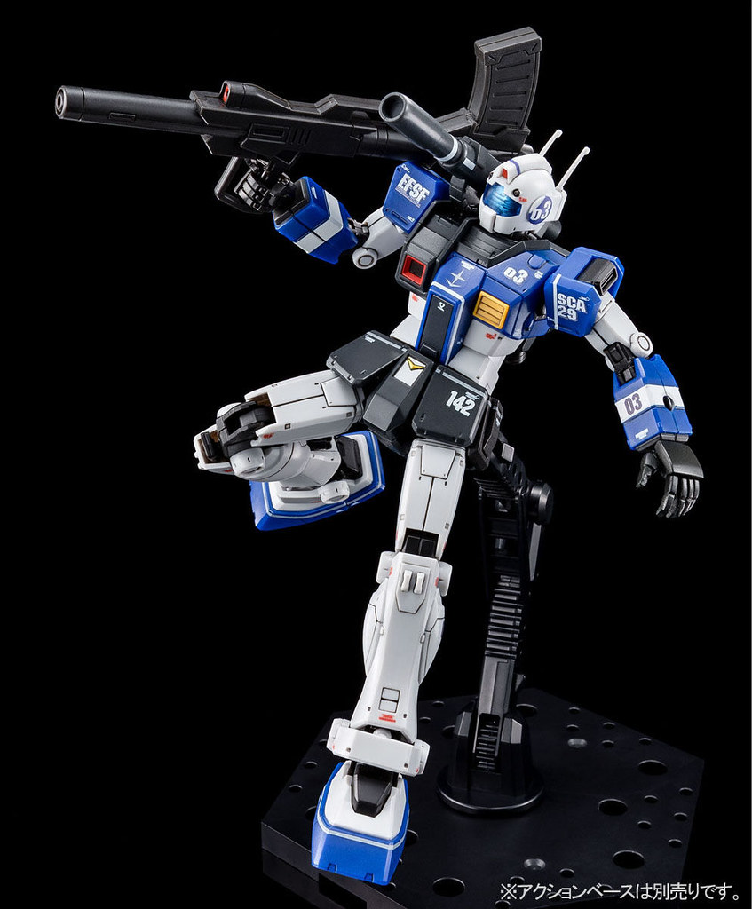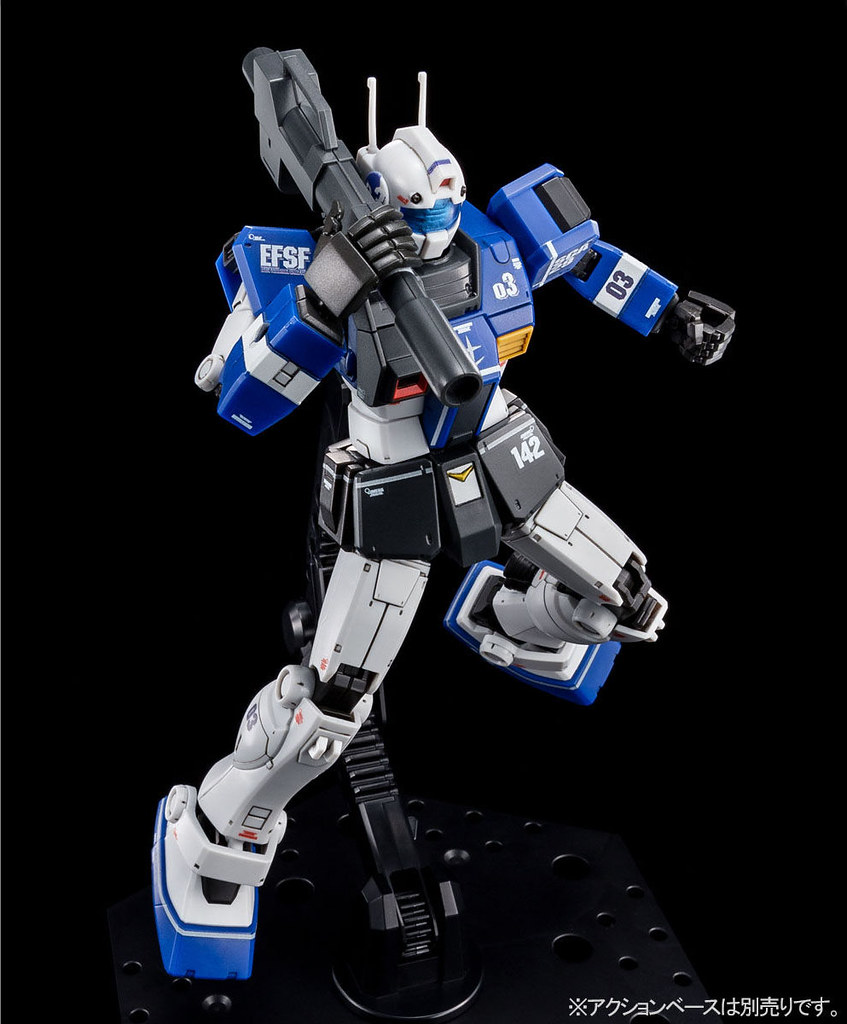 「HG 1/144 吉姆加農(火箭筒裝備)」套件以過去推出的吉姆加農(空間突擊規格)為基礎,將外裝甲換上藍白成形色、附上新規設計的機身標誌貼紙,重現「142MS小隊」特徵的機體規,而新增的武裝「巴爾札克式 380mm 火箭筒」也使用新規零件製作,握把基部具備可動機構,可隨姿勢需求前後移動。