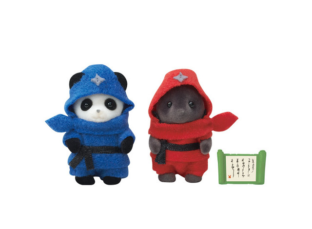 森林家族「嬰兒忍者」為 35 週年限定商品,以可愛的熊貓寶寶、鼴鼠寶寶為主角,分別穿上了藍色與紅色的小小忍者服,頭上還有精緻的飛鏢造型,模樣十分俏皮逗趣!另外附有卷軸配件可以賞玩。搭配各種小屋,能夠呈現出小小忍者飛簷走壁的趣味景象~