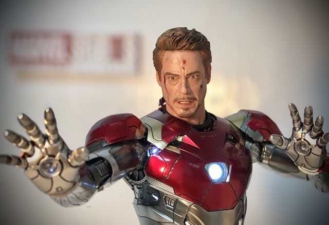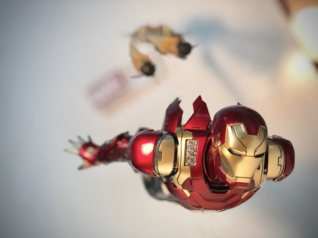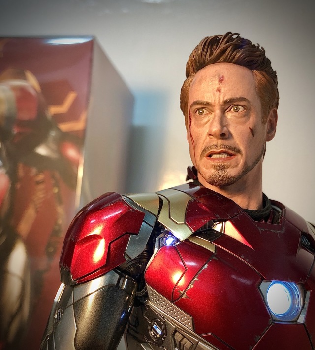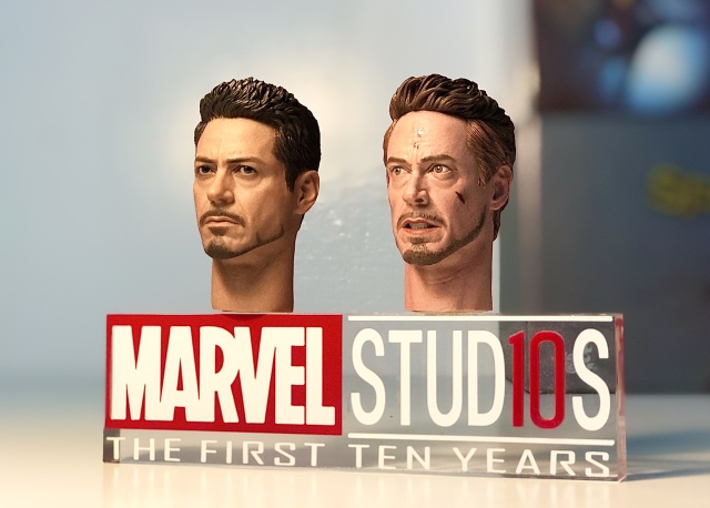 頭雕看似沿用了46的頭雕,但在脖子的細節上呈現了微微往左歪頭的幅度,再加上眼神向左凝視的不同,也算是有做調整,拿來小廠製作的復聯4頭雕比較,個人還是比較喜歡不同表情所帶來的視覺畫面,但HT的塗裝水準還是比小廠來的更加自然。