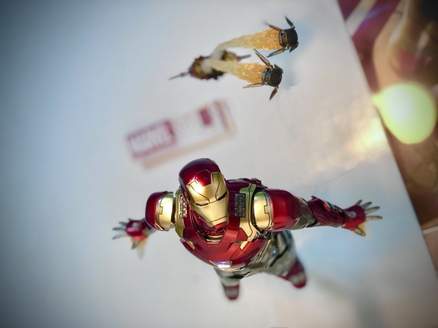 可動方面完全沿用了MK46的設計,並沒有新增其他可動關節,唯一不一樣的應該只有地台支架有做改變,托檔支架可另外再安裝一隻小的蛇管,來固定無人機的擺設,但合金鋼鐵人沒附上蛇管夾實在是太令人失望了。