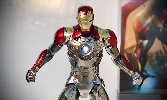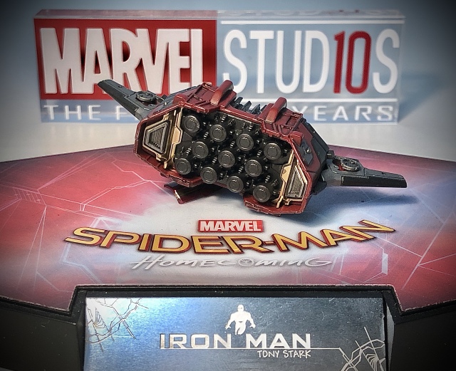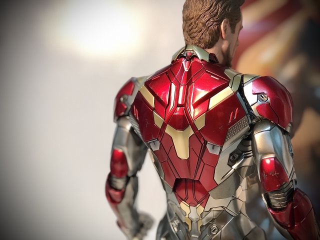 電影中MK47配色是致敬”漫畫終極宇宙”的終極鋼鐵裝,但機型卻沿用了mk46的設計,在電影中設定應該只是微調整的機型,但這樣配色卻也意外的非常耐看。