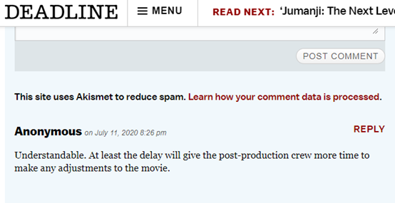 經過調查,原本9月4日將與《噤聲2》重疊上映日期,並角逐電影票房,但伴隨洛杉磯疫情加劇,Eric Garcetti市長的封城消息將影響電影院的營運—又或者兩者都是商業考量原因。