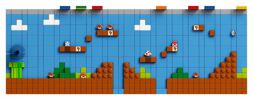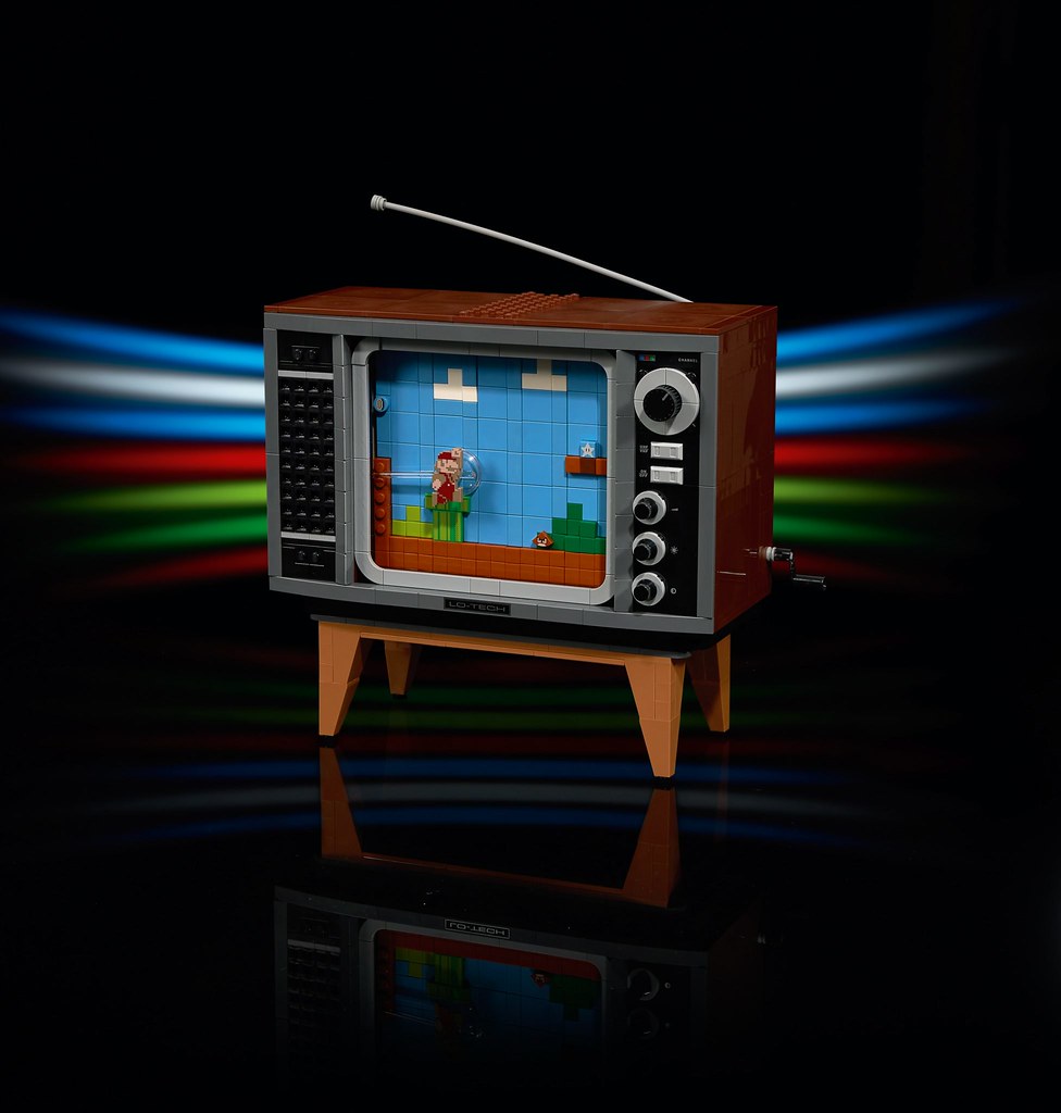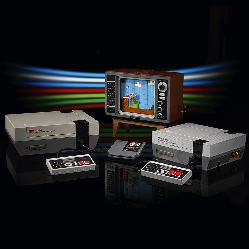 由任天堂在 1983 年所發行的經典電玩主機「紅白機(Family Computer,FC)」,伴隨著許多膾炙人口的電玩傑作,在當代成為最暢銷、最熱門的電玩主機,而不同於我們所熟悉的紅白配色 FC,在 1985 年開始發行的歐美版紅白機是以灰色為主調,並稱為「Nintendo Entertainment System,NES」,中文直譯是任天堂娛樂系統;本次的樂高作品就是以樂高磚高度複製該主機與控制器,並拼搭出一台運行著《超級瑪利歐兄弟(Super Mario Bros.)》遊戲畫面的復古電視,情懷滿滿!