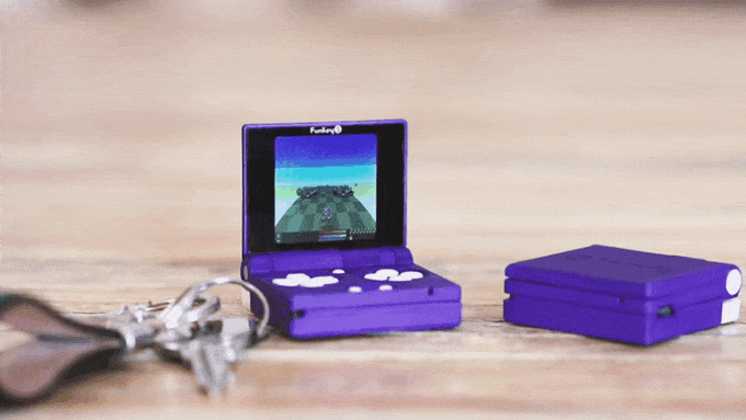 最近一款「FunKey S」計畫彷彿縮小的「GBA」外型,這款眾籌專案展開後已經達標,該產品不只作為一個鑰匙圈大小隨身攜帶,在硬體上還原彈簧鉸鏈的折疊工學,並新增感應器判斷開關,不只實現五秒內處理速度,還能在蓋上後即時儲存遊戲內容,以USB輕鬆充電。