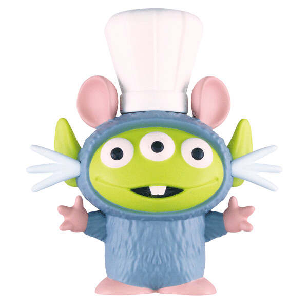 在 T-ARTS 的轉蛋作品中,根據迪士尼角色推出各種可愛造型立體作品的「Disney Character」可說是極具人氣,像之前推出的「唐老鴨的各種情緒收藏」、「滿滿的神燈精靈收藏」、「Pullback!! 叉奇」......等,而本次的三眼怪轉蛋則是以今年十分火熱的「變裝」為題設計,除了同是《玩具總動員》的胡迪(ウッディ)之外,還扮成了尼莫(ニモ)、超能一家(インクレディブルファミリー)、卡爾爺爺(カールじいさん)跟雷米(レミー);在約 5 公分的尺寸裡細緻地刻畫出三眼怪穿上各種角色戲服的可愛模樣。