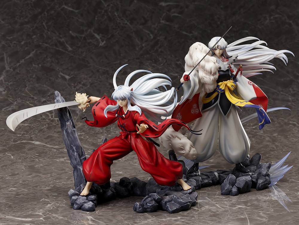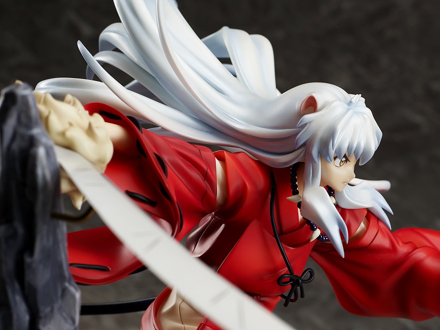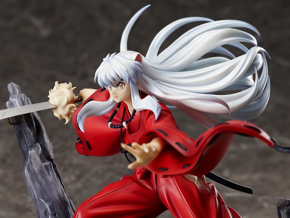 「犬夜叉」 1/7 比例模型,尺寸約高 24 公分,將動畫中的造型如實還原,身上穿著具有妖力的火鼠袍,帶有生動的皺褶、陰影及擺動,飄逸的銀白長髮、脖子上的言靈念珠皆讓整體具有十足的動態感。手中揮舞著妖刀鐵碎牙,巨大的刀鋒搭配犬夜叉堅毅的表情,展現出保護阿籬和夥伴們的決意!與同父異母的哥哥—殺生丸共同擺放,可以呈現並肩作戰與死對頭兄弟對戰的精彩場面。