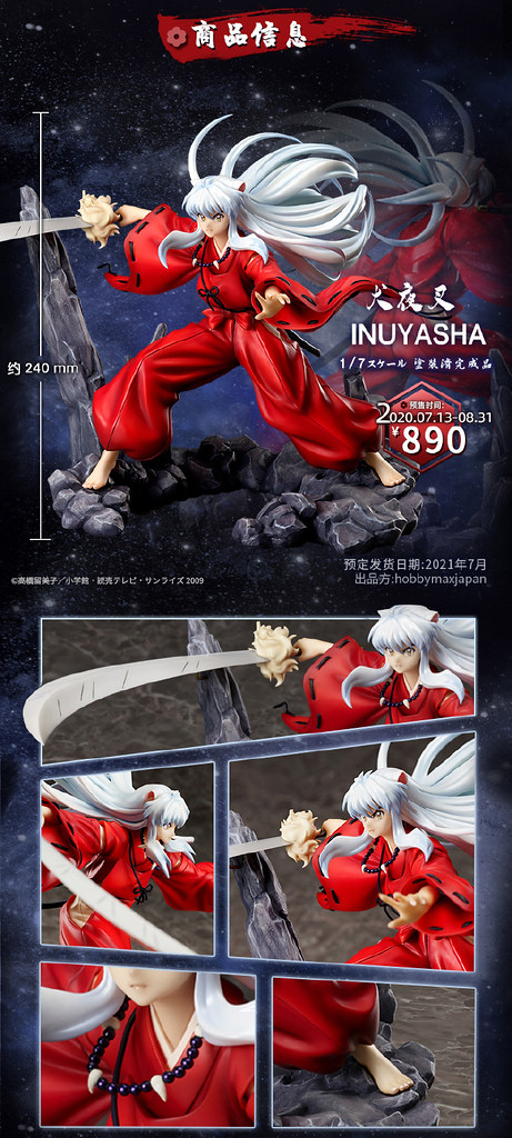 來自中國上海的新興造型品牌 HOBBY MAX(HOBBY MAX Japan)將推出以人氣日本動漫《犬夜叉》為主題,推出「殺生丸」、「犬夜叉」 1/7 比例模型,參考售價為 16,280 日圓,預計將於 2021 年 7 月發售。