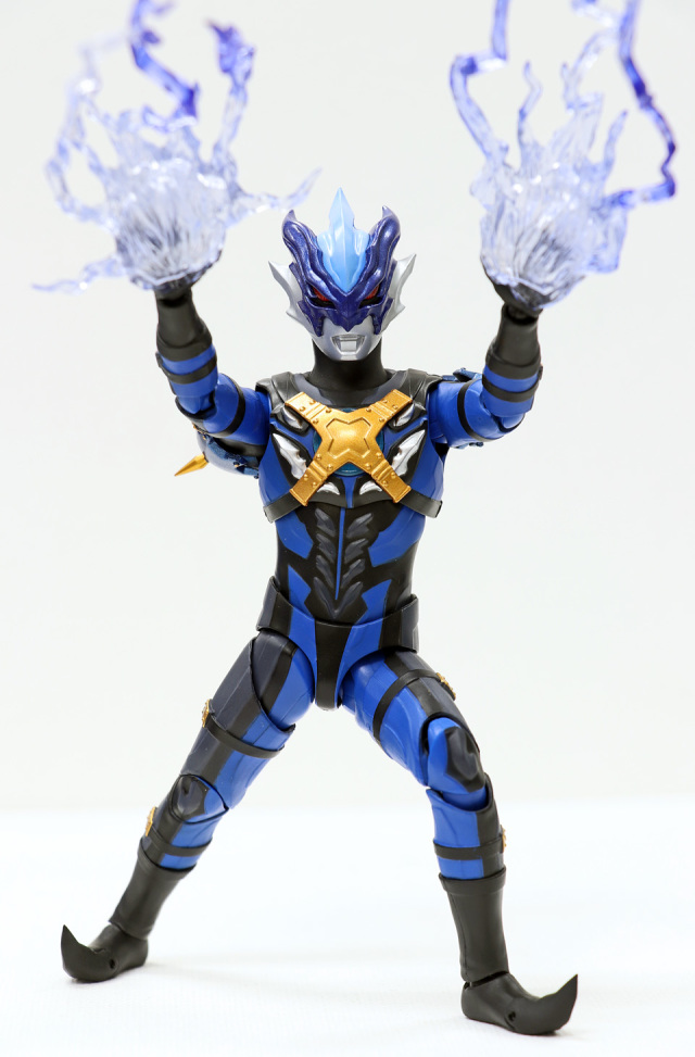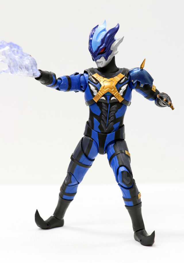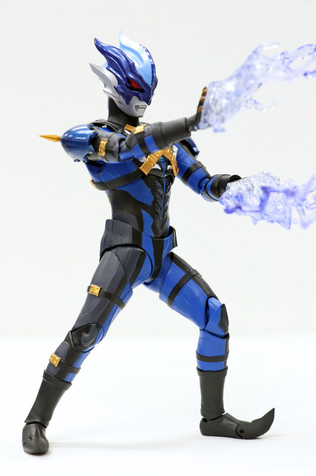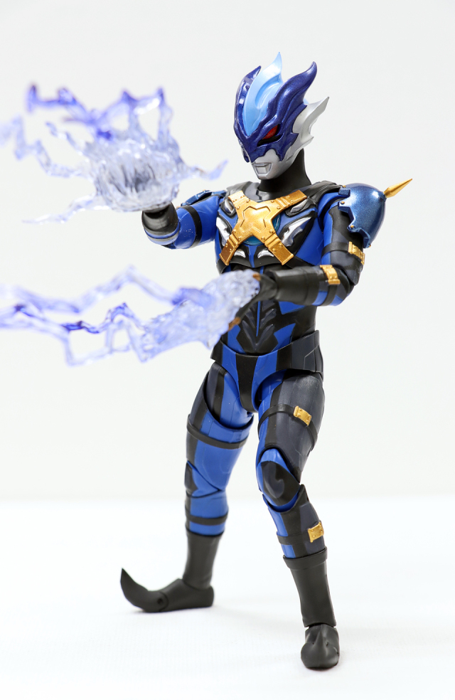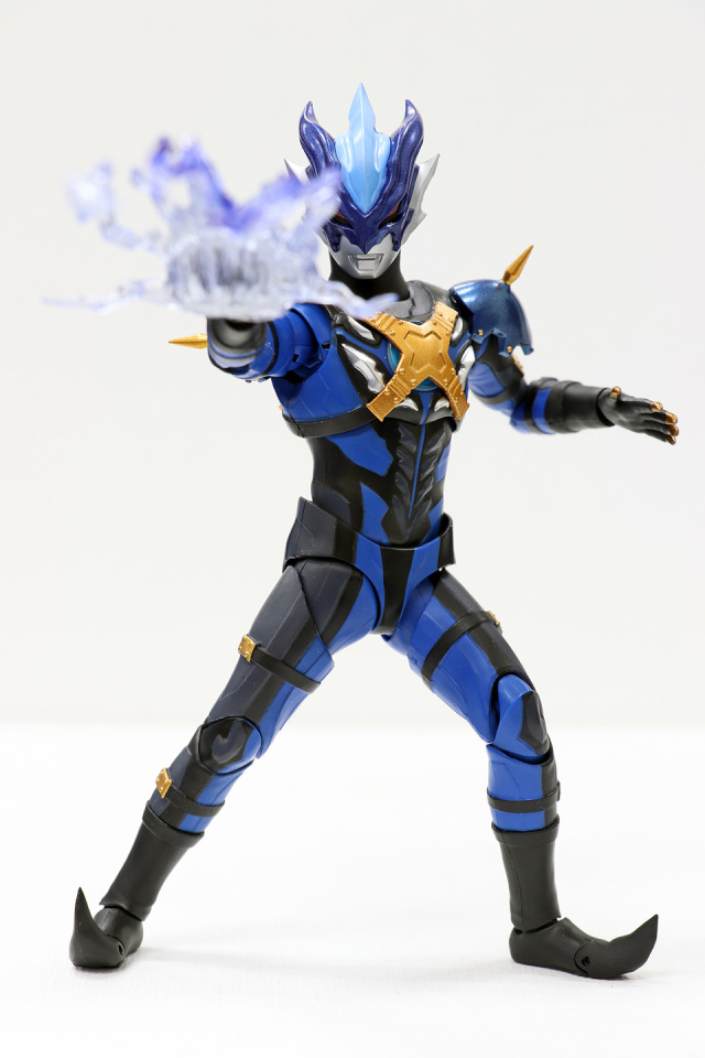 本體全高約 150 mm。附有交換用造型手左右各 5 種、左右手光線發射特效及大河光線發射特效等配件,故可玩性不俗。主色以金、銀、藍、黑的配色為主,上色及塗裝不錯!眼部亦使用了透明材質,故外型上贏不少分數;外觀上亦不算太 "膠"。QC 好,每一方面的表現都是水準以上。SHF 的可動性不會太差,關節鬆緊度適中,可以擺出劇中的任何動作。另外他左右手也可裝備光效部件,令他比其他 Ultraman 好玩,這是他成功的地方!