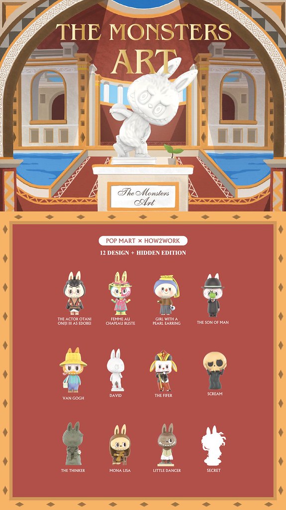 那趕快來看看這次的「The Monster 精靈藝術系列盒玩」吧!共有 12 款 + 1 隱藏,可以看到 LABUBU、Tycoco、Spooky 化身為偉大的藝術家「梵谷」或是聞名世界、永垂不朽的藝術傑作,並以自身的設計元素重新詮釋,在經典之中做出一種風格強烈又可愛的突破!