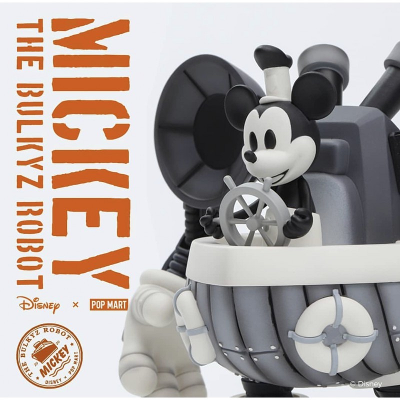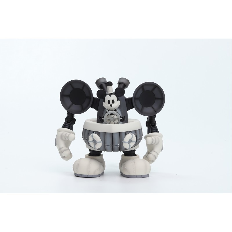 過去,BigBoysToys 旗下的「Bulkyz Collection」系列是以《快打旋風》、《忍者龜》為主題,製作出高達 30 公分、結合 Q 版比例與硬派線條的魄力作品,而這次的「Mickey The Bulkyz Robot」相信是以汽船威利號(Steamboat Willie)為靈感設計,設計師 Foon Wong 除了將汽船重新詮釋成機器人,也以 Bulkyz Collection 系列的風格展現,而顏色部分則是還原《汽船威利號》動畫中的黑、灰、白色。