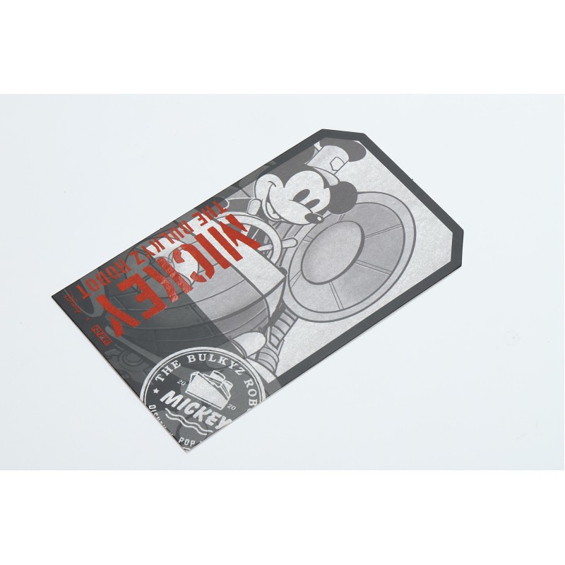 「Mickey The Bulkyz Robot」高約 15 公分,是採用 PVC 為材質打造的不可動完成品,機體並沒有設計頭部,而是將汽船頭與駕駛艙的部分結合並作為本作核心,四肢除了製作出機械細節與刻線外,更能充分感受到米奇的角色特色,像是手套、圓潤的鞋子,以及那一對大圓耳朵!側面更是能看到存在感滿滿的尾巴,超可愛!本作還會附上一張雙面印刷的酷卡喔~