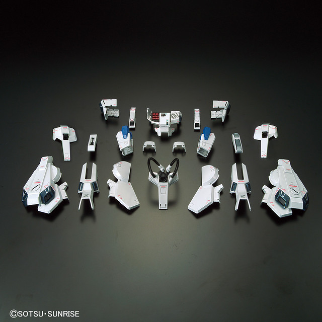 而整體成形色則改為更豪華的規格,頭部天線、超絕 MEGA 加農砲等黃色零件改為金色電鍍,增設裝甲零件經過 Titanium Finish 加工呈現銀白的色澤,背包等多處也變成金屬色成形,相比一般版有更加厚重的質感。