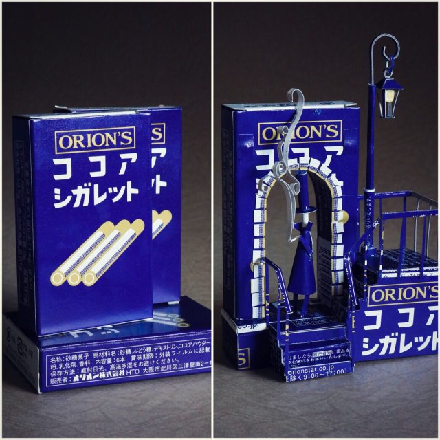 當然,名字都叫作「空箱職人」了,當然還有其他精緻有趣的作品,不管是餅乾包裝盒、裝咖啡的盒子還是飲料鋁箔包,只要是「盒子」或「箱子」,他都能把它變成另一個新事物,以下是他的部分作品,就讓我們一同體會一下他的精湛技藝吧!