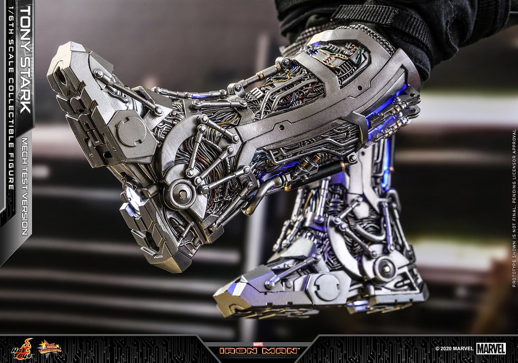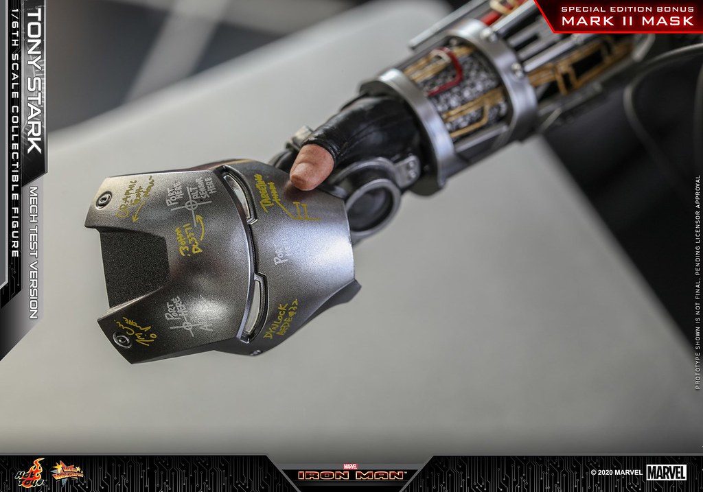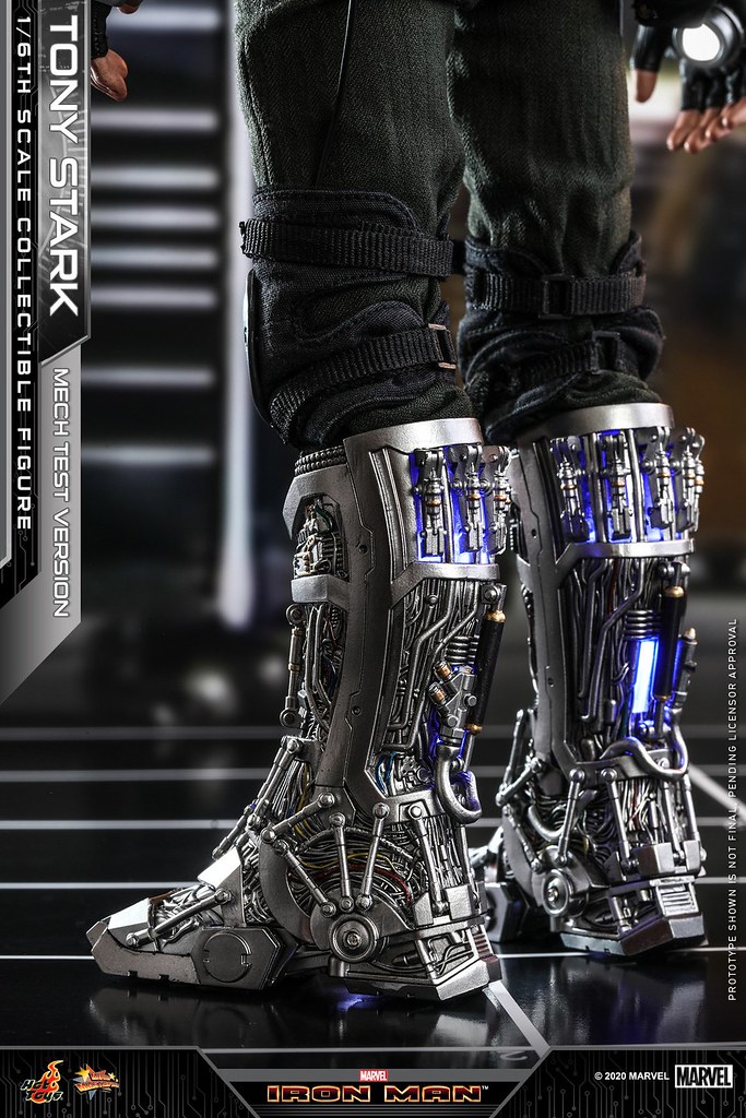 在 2010 年的「MMS116」之後相隔十年,Hot Toys 再度以《鋼鐵人》中東尼在自家實驗室進行飛行測試的場景為題,推出身穿測試版裝甲的 12 吋人偶作品!本作高約 30 公分,全身共計 32 處可動,高度再現了便服史塔克穿戴銀色機械手臂、腿部護甲的造型,尚未裝上外部盔甲、鋼鐵裝原型的精密機械結構,以及外露的電線、人偶皮帶上的電池小包,讓人能夠充分回味電影裡東尼朝著「鋼鐵人」身份一步步邁進的精彩時刻!