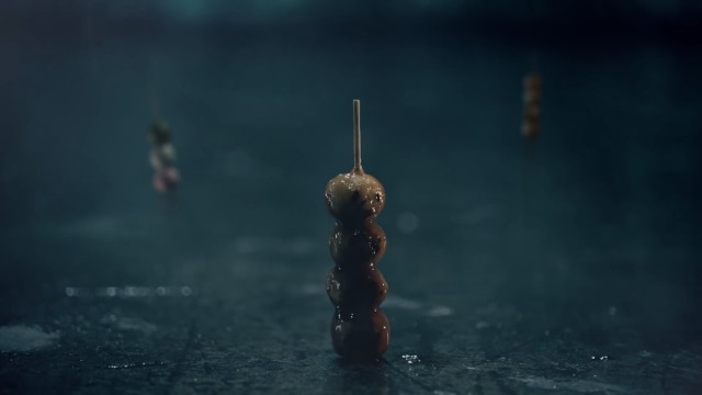 有趣的是,在渡邊直美的影片中,將原本 MV 中的刀子(雨刀)換成了糯米糰串,「Rain On Me」也因此變成了「Dango On Me」,歌詞背後原本帶來的「艱苦感」也成為了「飽足感」XD