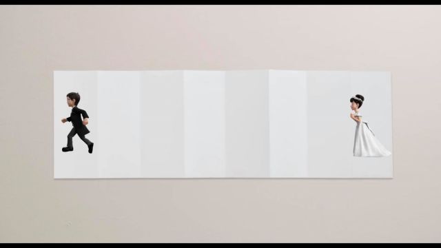 ▼預告以手拉紙的方式呈現出大雄從結婚典禮中逃離靜香的情景