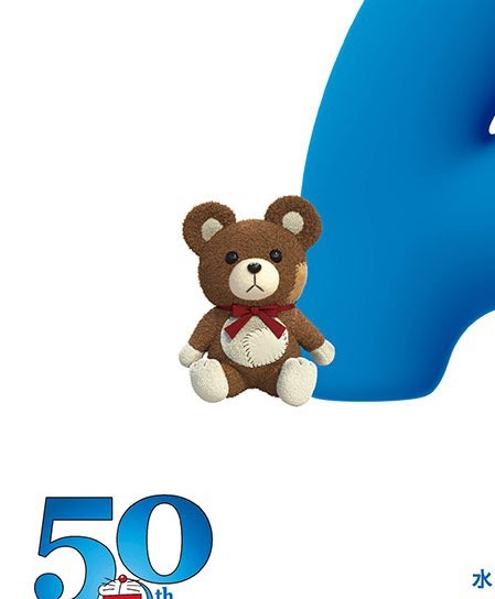 另外在電影海報中,除了可以看到大大的「2」字樣別著哆啦A夢的蝴蝶結鈴鐺外,在左下角的部份還能看到滿滿補丁的泰迪熊娃娃,這也意味著電影中將會穿插觀眾讀者們所熟悉的溫馨經典故事〈大雄與奶奶的回憶〉,而已故的角色「大雄奶奶」也將在本片中登場。