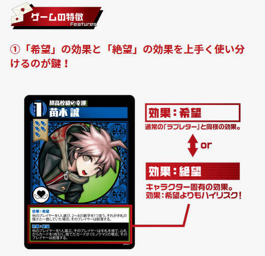 在「希望」與「絕望」的異同時機,角色的能力也會因此轉換,視為本遊戲最有趣的關鍵,而情書玩法本來就是款同歡的派對遊戲,但鬥智的技巧卻是一花一世界。