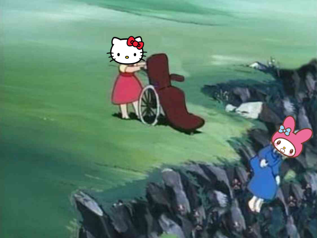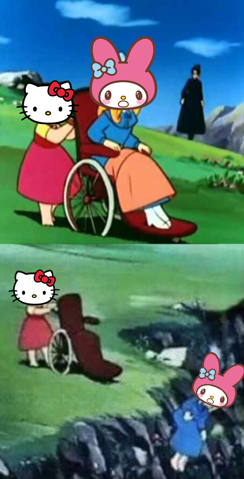 Hello Kitty :「妳憑什麼人氣比我高?下去啦!」