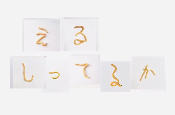 日本造形大學的准教授-高田唯(@ALLYUIME)投稿了一篇附上四張奇特照片的推文:「在昨天的研討會上用點心麵做了文字◎」